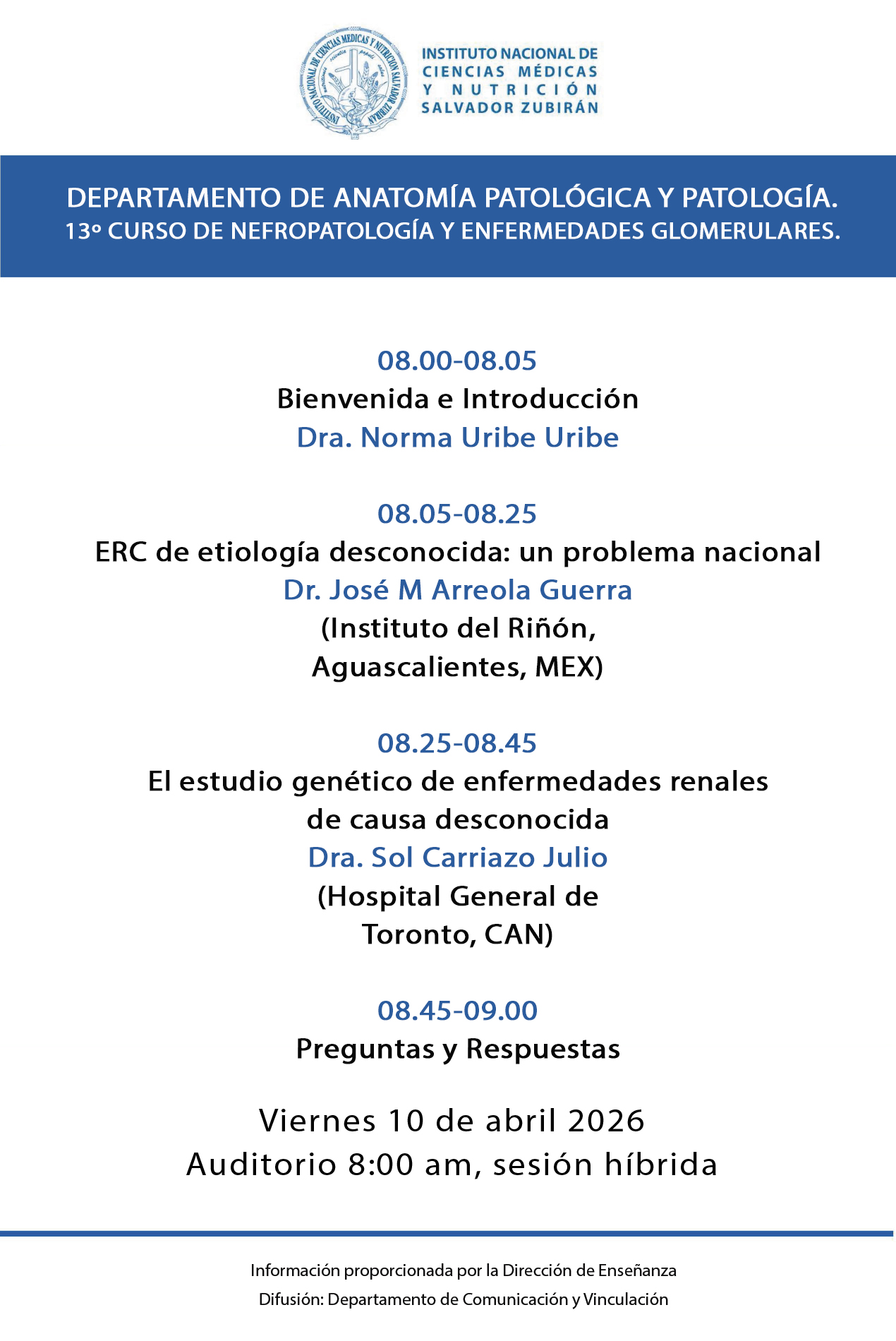 | 10 | Departamento de Patología (nefropatología) |